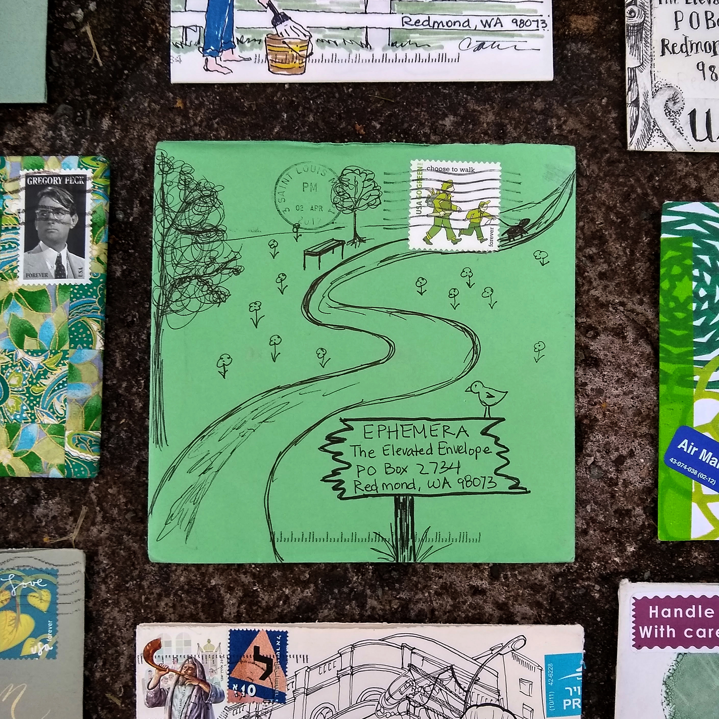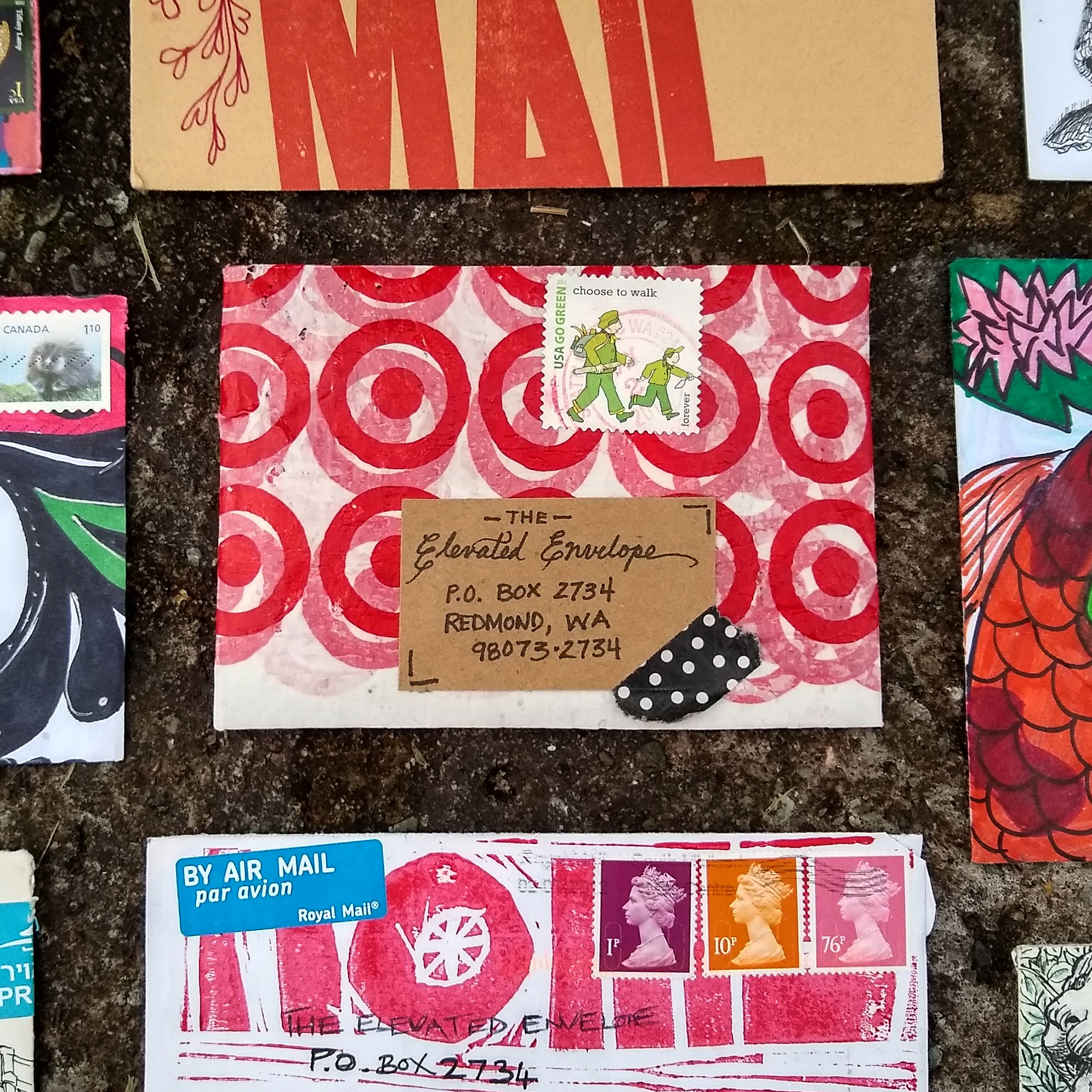 FYI, I have not actually mailed this collaged envelope yet. It’ll be interesting to see how well it travels between Ireland and Seattle. I will update this page with an “after” photo once Charity receives it.